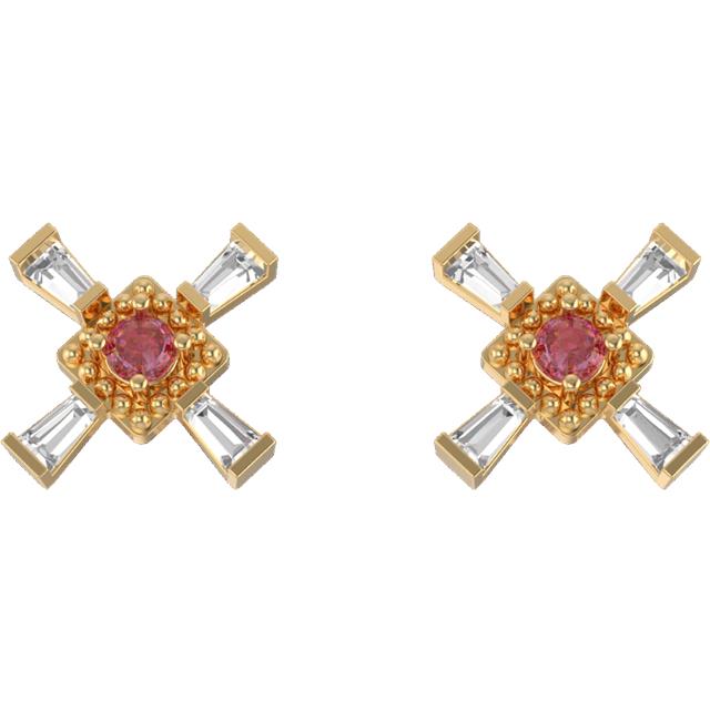 These Starburst studs come featured in natural AA pink tourmaline and baguette diamonds. Or Custom-made-to-order, your choice of gemstones, london blue topaz, etc! Email me for any changes.